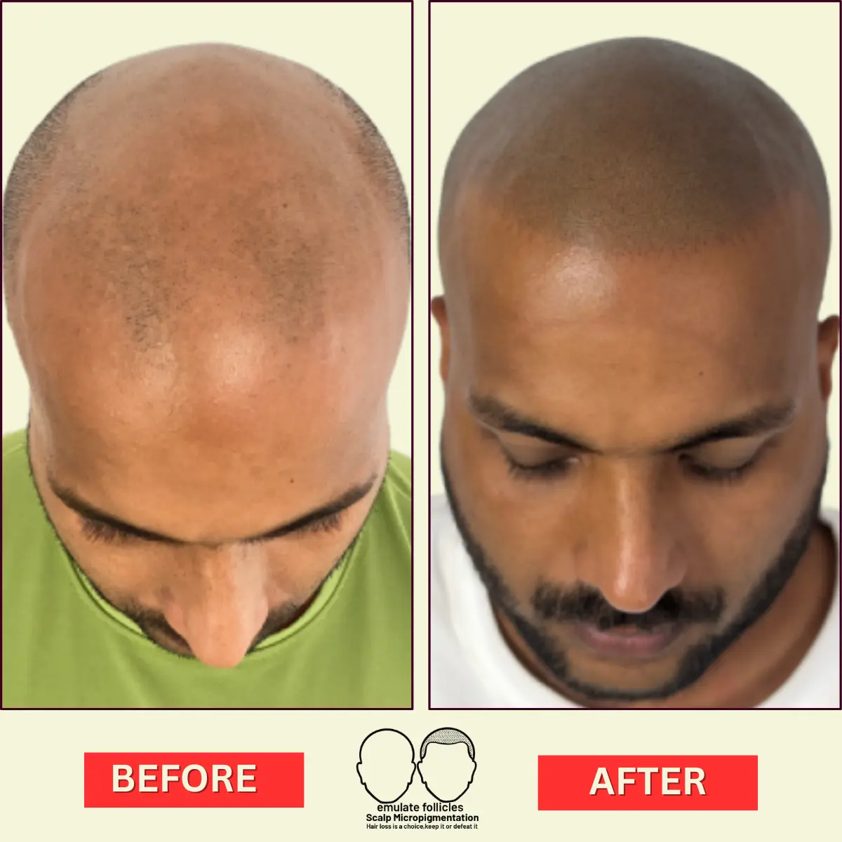 SMP is non-invasive and absolutely safe. However, the onus is on you to choose a well-trained and certified scalp micropigmentation technician with solid experience. In a fix? Emulate Follicles to your rescue!